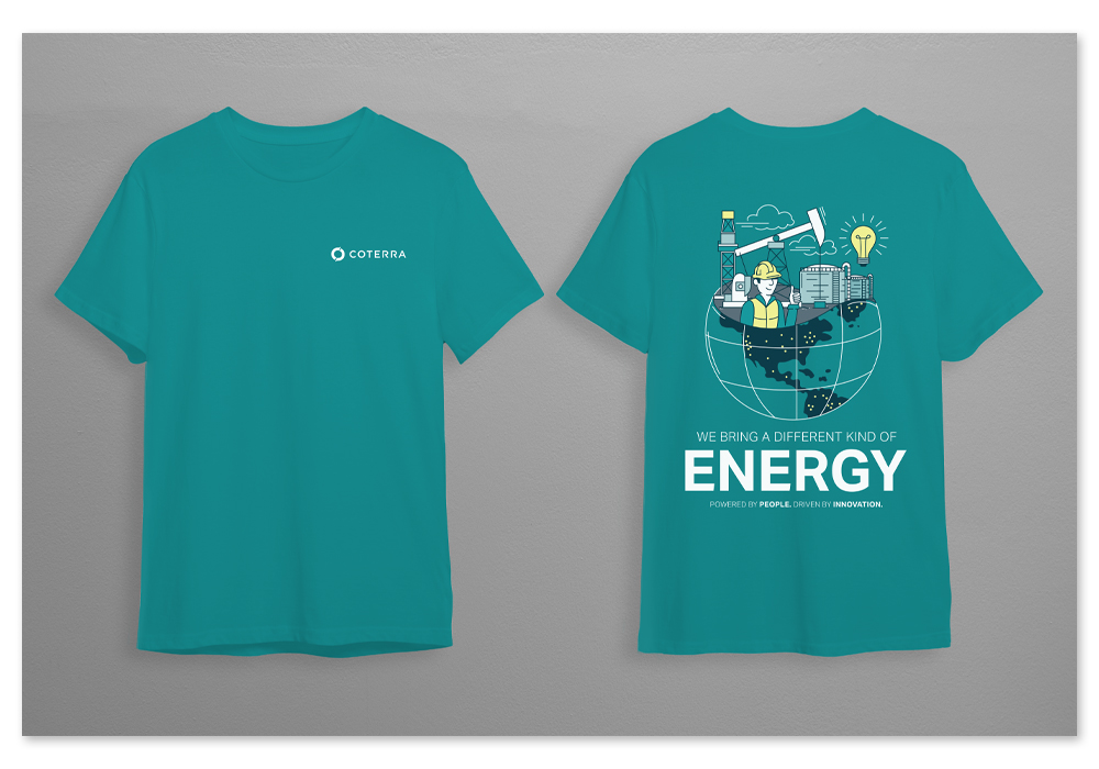 Coterra Energy is dedicated to investing in its local communities and producing sustainable energy. Our design team helped promote their mission by creating billboards, magazine and newspaper ads, internal facility guides, and t-shirt designs. Whenever photos were used in our designs, we opted to use actual pictures of site locations and employees at work to show the real humans who drive Coterra Energy forward.